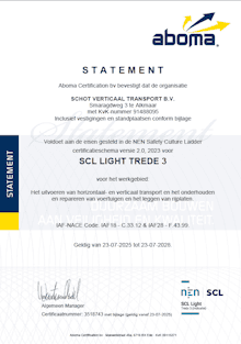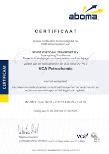 Voor het waarborgen van de veiligheid van uw en onze mensen voldoen wij aan strenge veiligheidseisen.